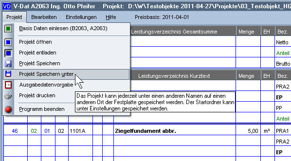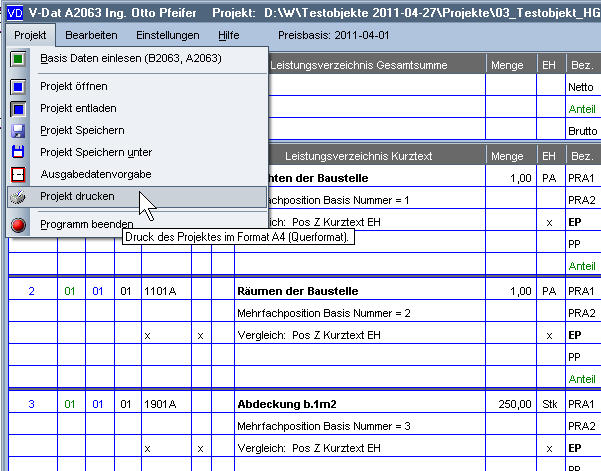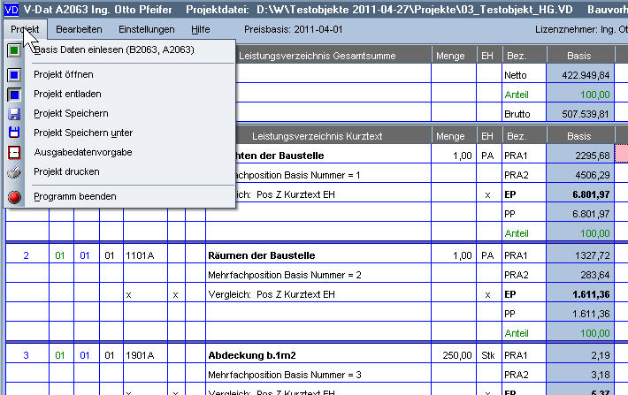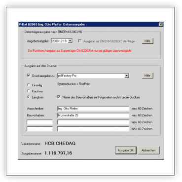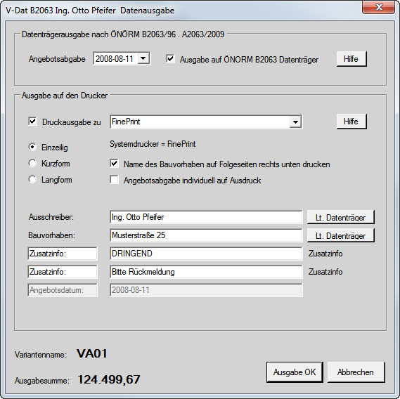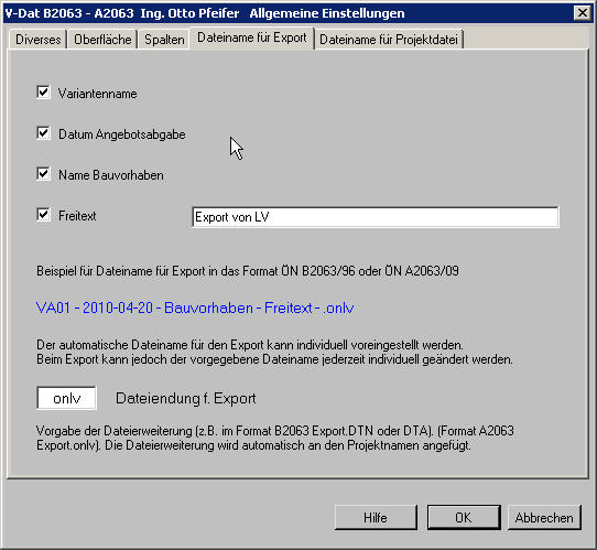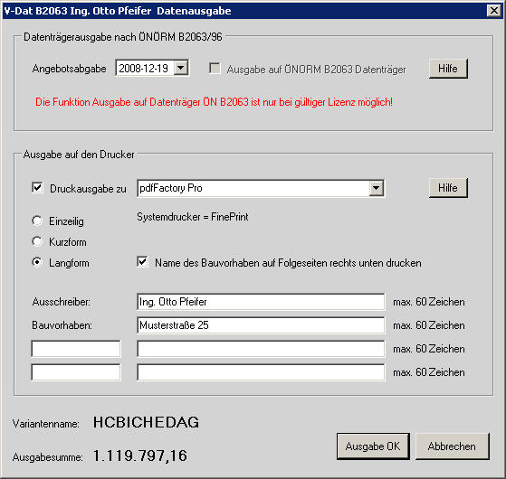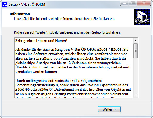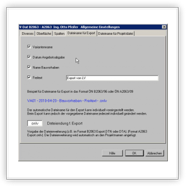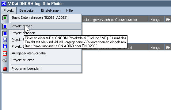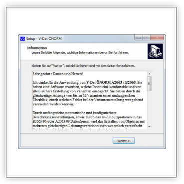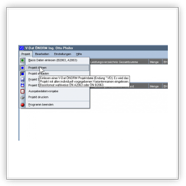 V-Dat ÖNORM Programme zum Erstellen von Varianten für Datenformat ÖNORM B2063/1996 und ÖNORM A2063/2009/2015/2021: