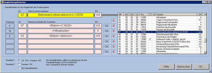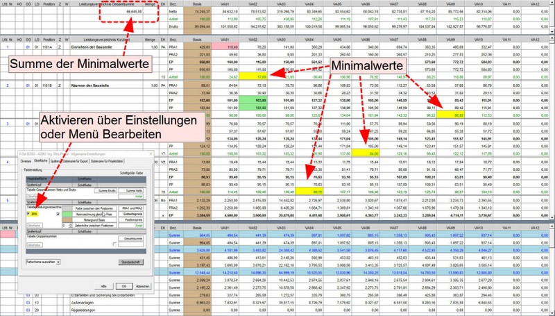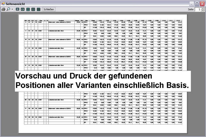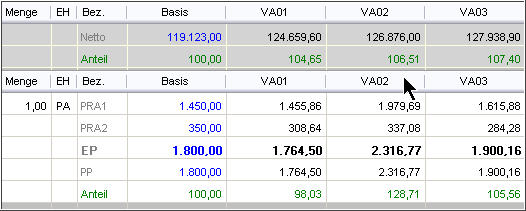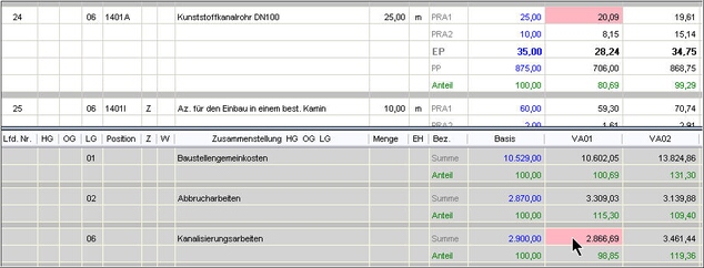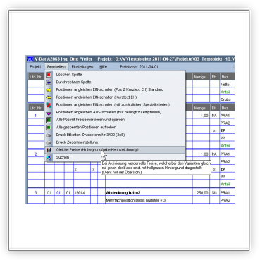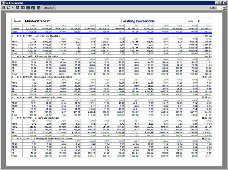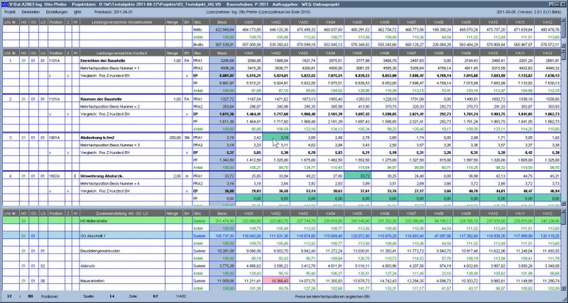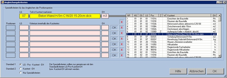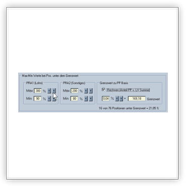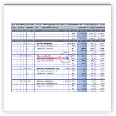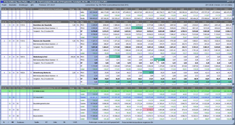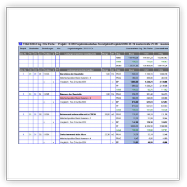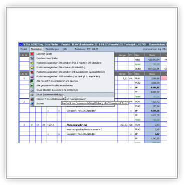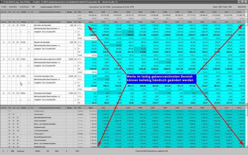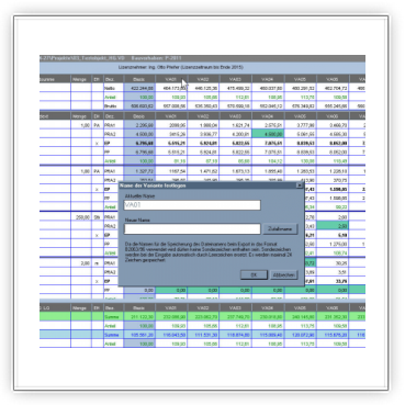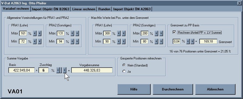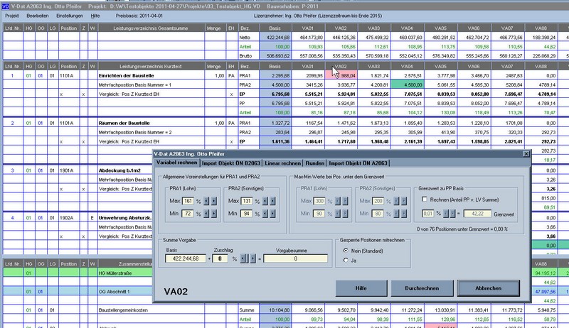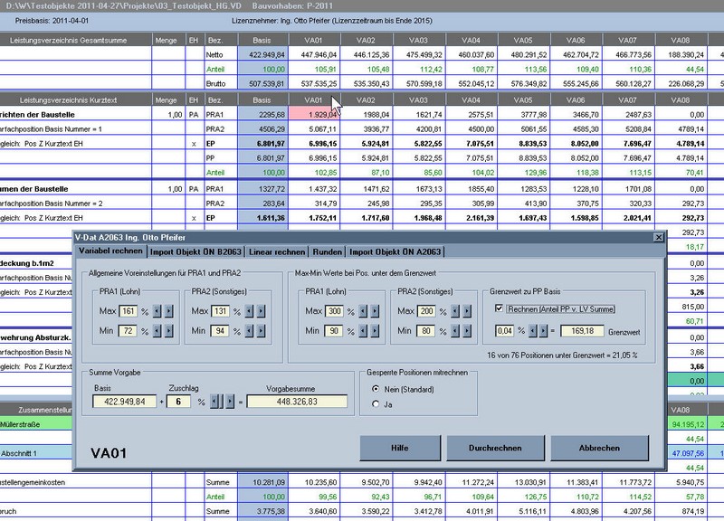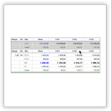 Fehler in der Preisgestaltung werden dabei sicher und rasch erkannt. Die Einheitspreise bei den Varianten können durch verschiedene automatische Rechenhilfen mit Vorgabe einstellbarer Limits vorgegeben und händisch korrigiert werden.