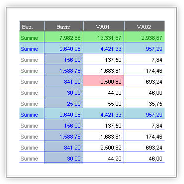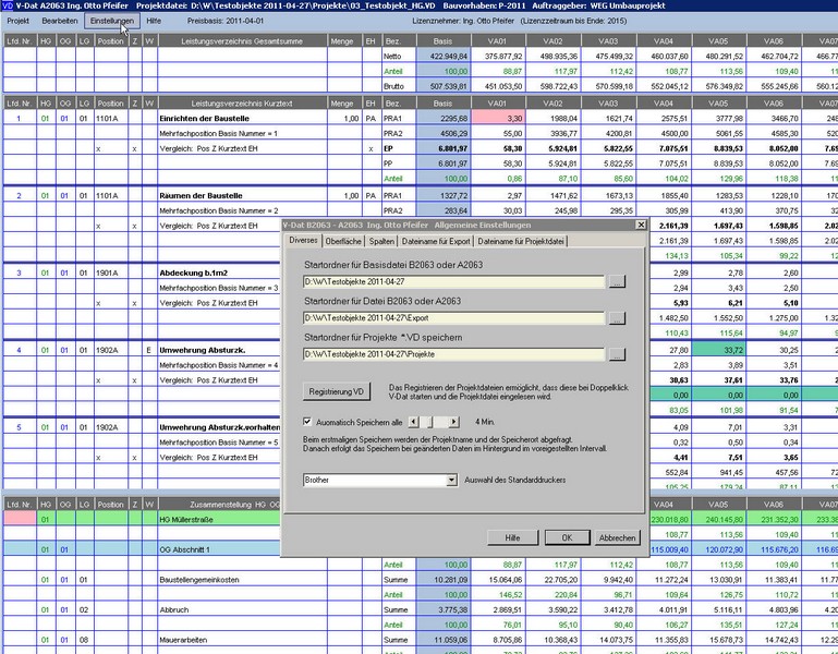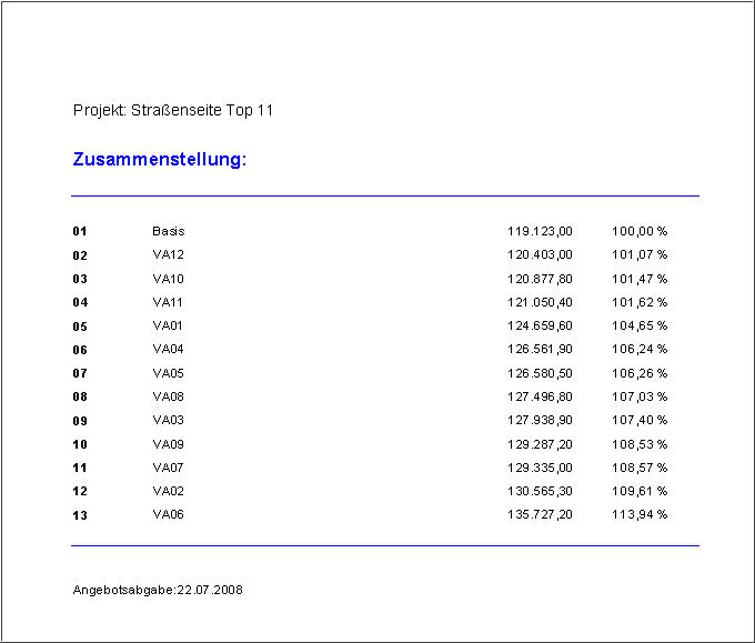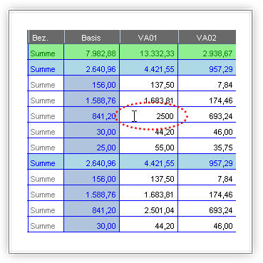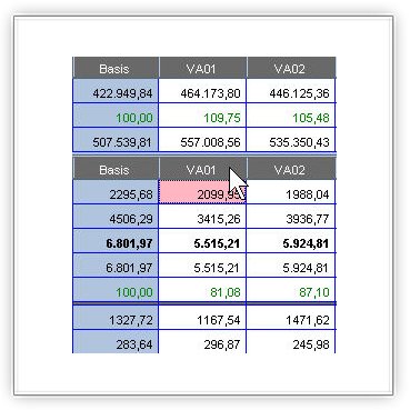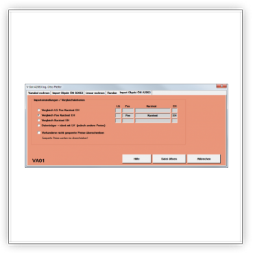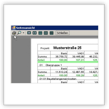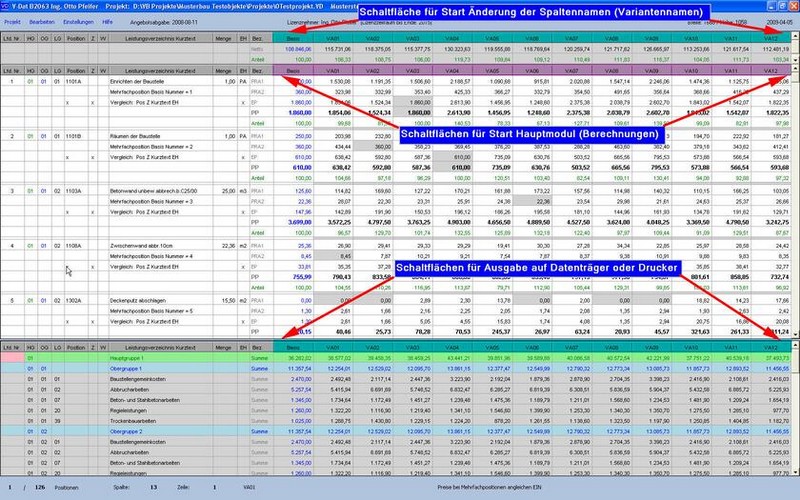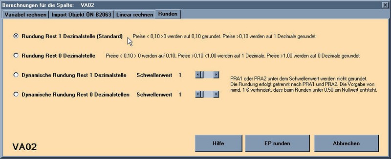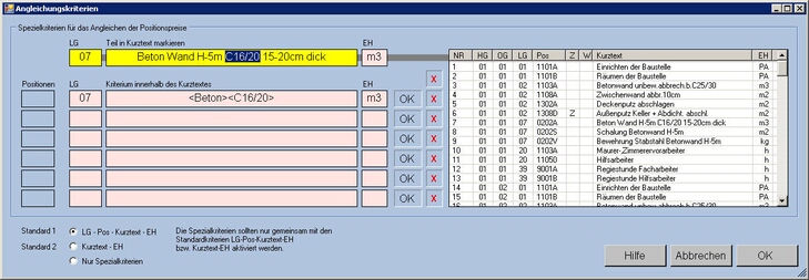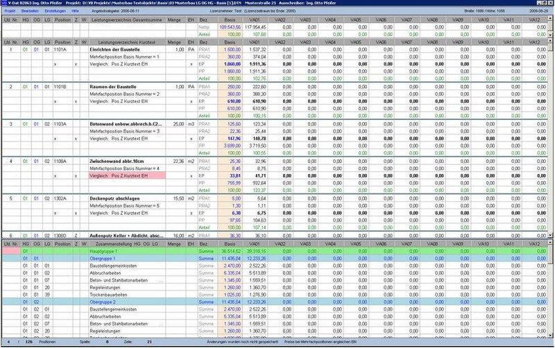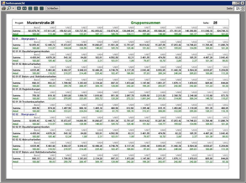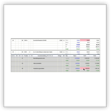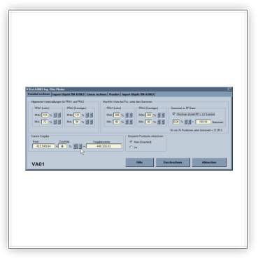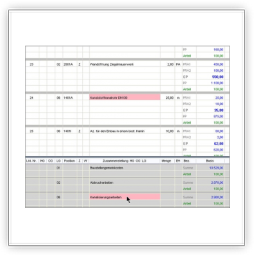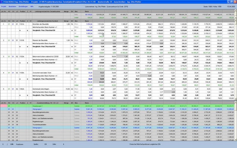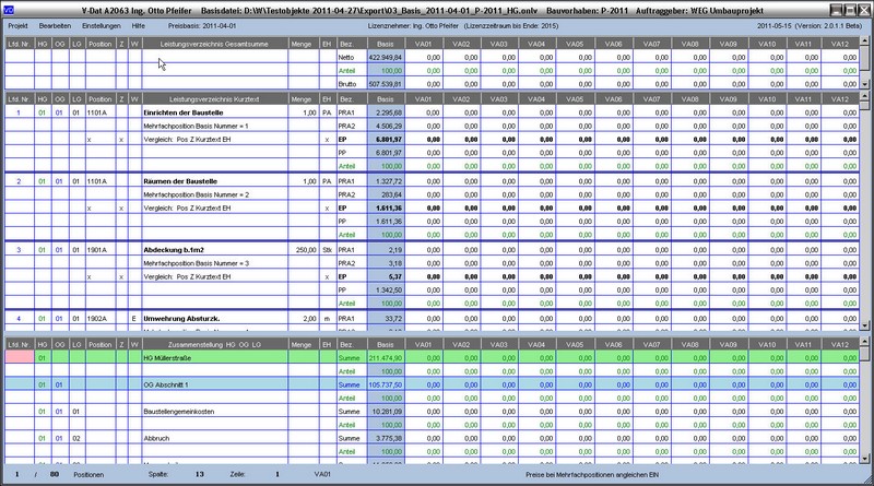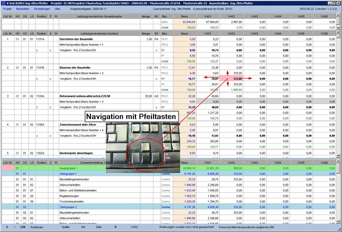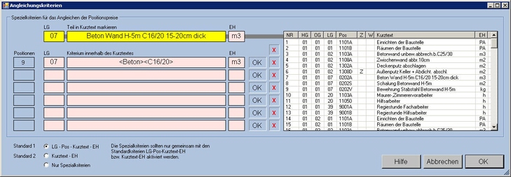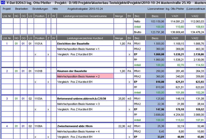 Fehler in der Preisgestaltung werden dabei sicher und rasch erkannt. Die Einheitspreise bei den Varianten können durch verschiedene automatische Rechenhilfen mit Vorgabe einstellbarer Limits vorgegeben und händisch korrigiert werden.