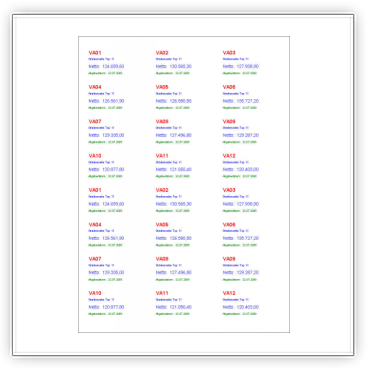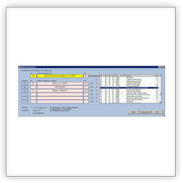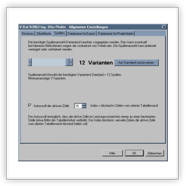 Das Programm unterstützt das Erstellen von bis zu 12 Varianten aus einer Basis. Dabei werden alle Varianten in Tabellenform nebeneinander angezeigt und können beliebig geändert und mit automatischen Funktionen verändert werden.