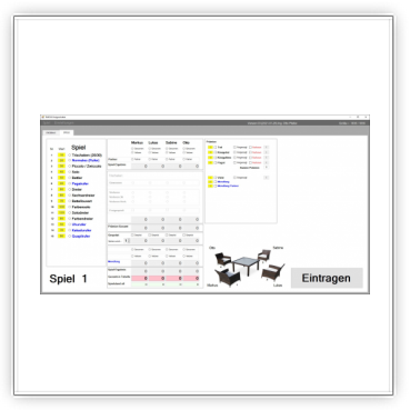 Wer spielt gerne Tarock und ärgert sich, wieviel Zeit man beim Aufschreiben der Ergebnisse und vor allem beim Rechnen der Spielergebnisse mit den vielen Fassetten vertut. Diese Zeit könnte für neue Spiele besser genutzt werden. Für alle diejenigen, gibt es von mir ein Windowsprogramm, welches auch auf einem Windows Tablett installiert werden kann. Zum Testen mit allen Funktionen kann die Tarock Software von meiner Homepage bezogen werden. Die Spielergebnisse werden automatisch in einer XML-Datei mit der Endung *.tarock gespeichert. Zum Freischalten zur Vollversion ist ein Freischaltcode erforderlich.
