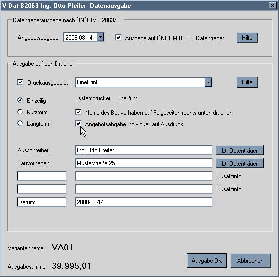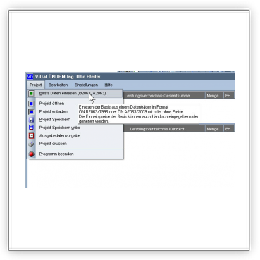 V-Dat ÖNORM Programme zum Erstellen von Varianten für Datenformat ÖNORM B2063/1996 und ÖNORM A2063/2009/2015/2021: